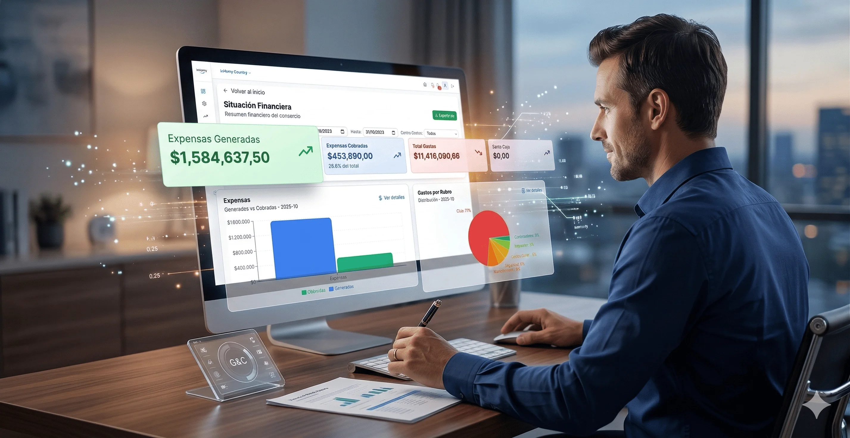 Dashboard, expensas generadas y cobradas, gastos por rubro. Todo en un solo panel para decidir mejor.